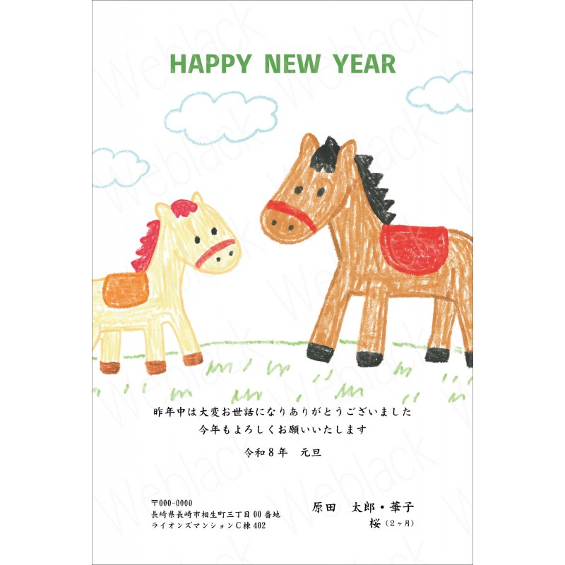 タグ: 和風年賀状, オリジナルデザイン年賀状, 午年年賀状, 午年デザイン年賀状, , たてデザイン, 祝詞変更可, 文章変更可, フチなし