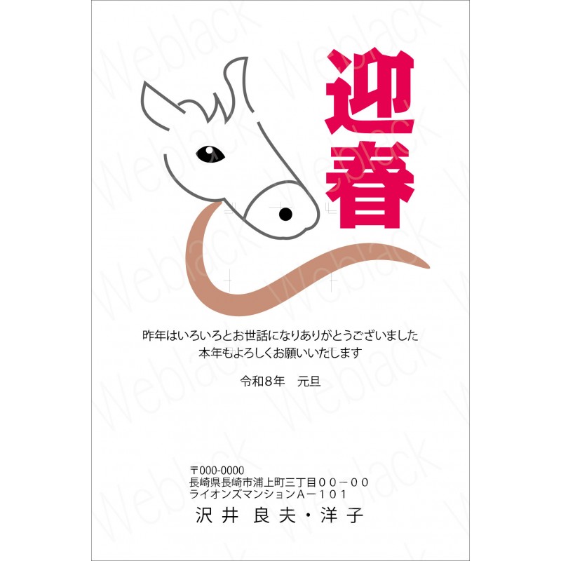 タグ: デザイナーズデザイン年賀状, 午年年賀状, 午年デザイン年賀状, 干支文字デザイン年賀状, よこデザイン, 祝詞変更可, 文章変更可, フチあり