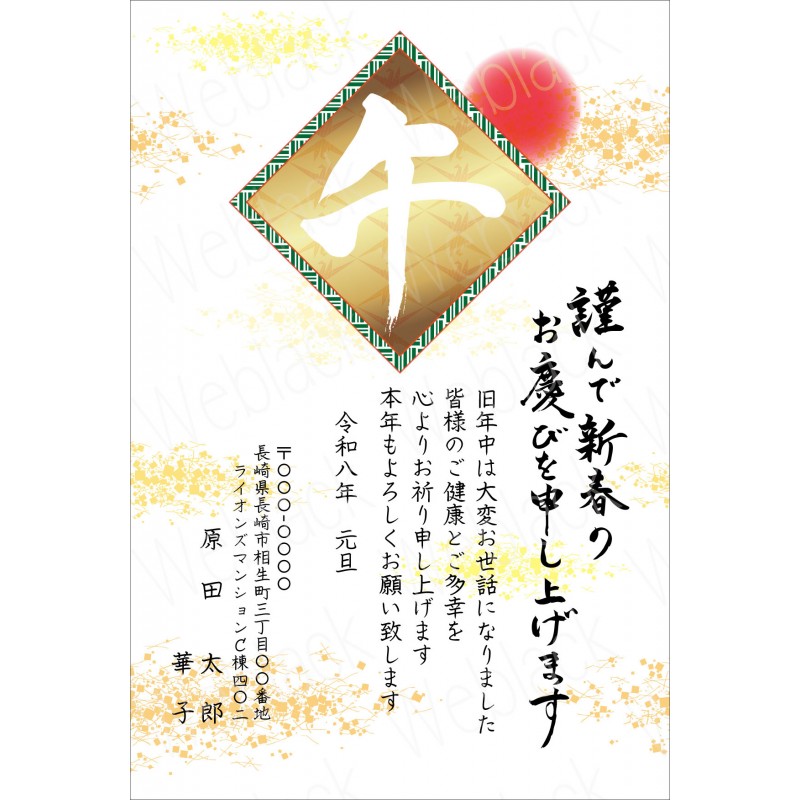 タグ: 和風年賀状, オリジナルデザイン年賀状, 午年年賀状, 午年デザイン年賀状, たてデザイン, 祝詞変更可, 文章変更可, フチなし