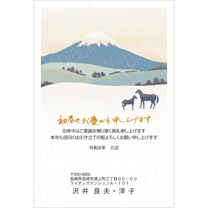 タグ: 和風年賀状, ビジネスデザイン年賀状, 午年年賀状, 午年デザイン年賀状, 干支文字デザイン年賀状, たてデザイン, 祝詞変更可, 文章変更可, フチあり