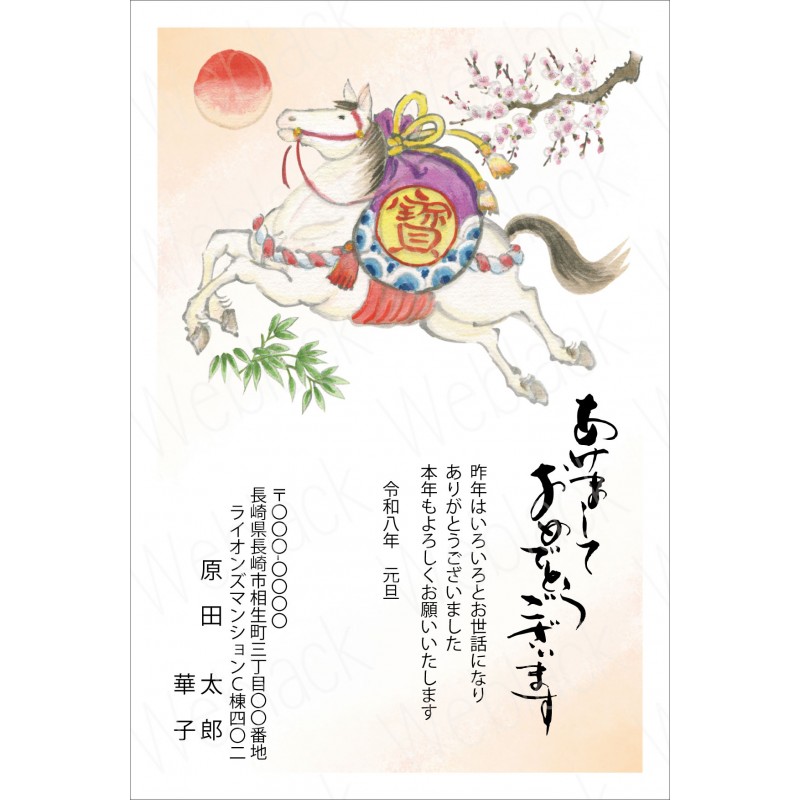 タグ: デザイナーズデザイン年賀状, 午年年賀状, 午年デザイン年賀状, 干支文字デザイン年賀状, たてデザイン, 祝詞変更可, 文章変更可, フチあり