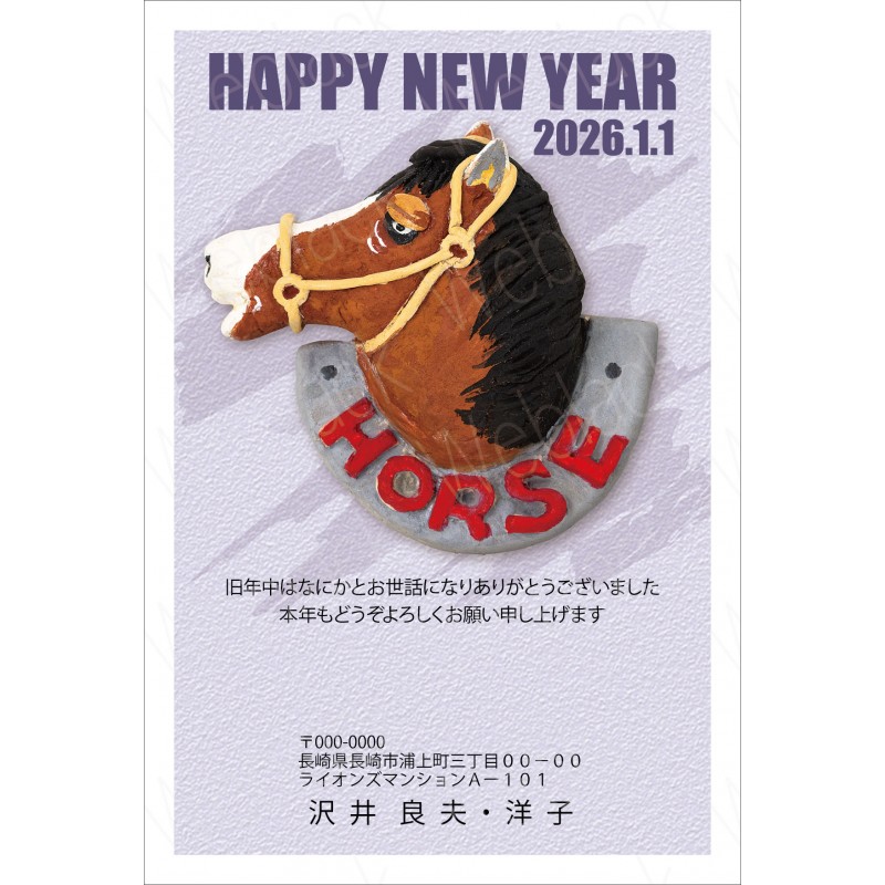 タグ: 立体フォトザイン年賀状, 午年年賀状, 午年デザイン年賀状, 干支文字デザイン年賀状, たてデザイン, 祝詞変更可, 文章変更可, フチあり