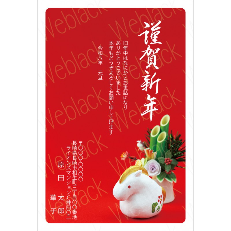 タグ: 立体フォトザイン年賀状, 午年年賀状, 午年デザイン年賀状, 干支文字デザイン年賀状, たてデザイン, 祝詞変更可, 文章変更可, フチあり